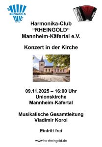 Kirchenkonzert in der Unionskirche Käfertal unter der Leitung von Vladimir Korol. Eintritt frei.